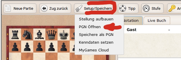 Wer bei FRITZ (also, etwas weiter oben) genau aufgepasst hat, der hat vielleicht gemerkt, dass man auch PGN-Dateien laden kann.
