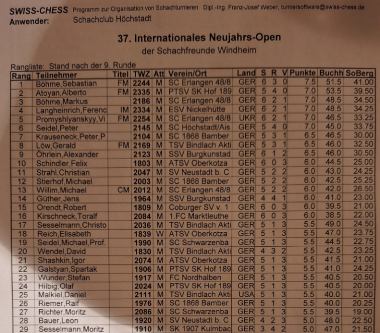 Schachfreunde Windheim » 37. Int. Neujahrsopen