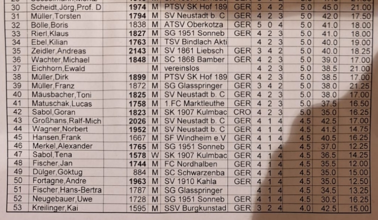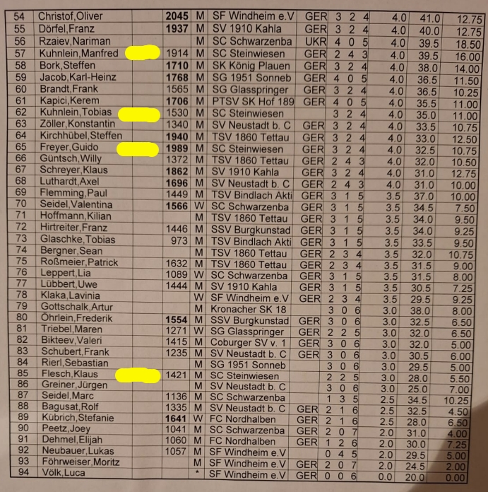 Nur eine kurze Bemerkung von meiner Seite: Der Spitzenspieler der SF Windheim, Oliver Christof landete auf den 54. Platz. Da sieht man erst, wie stark das Turnier besetzt war.